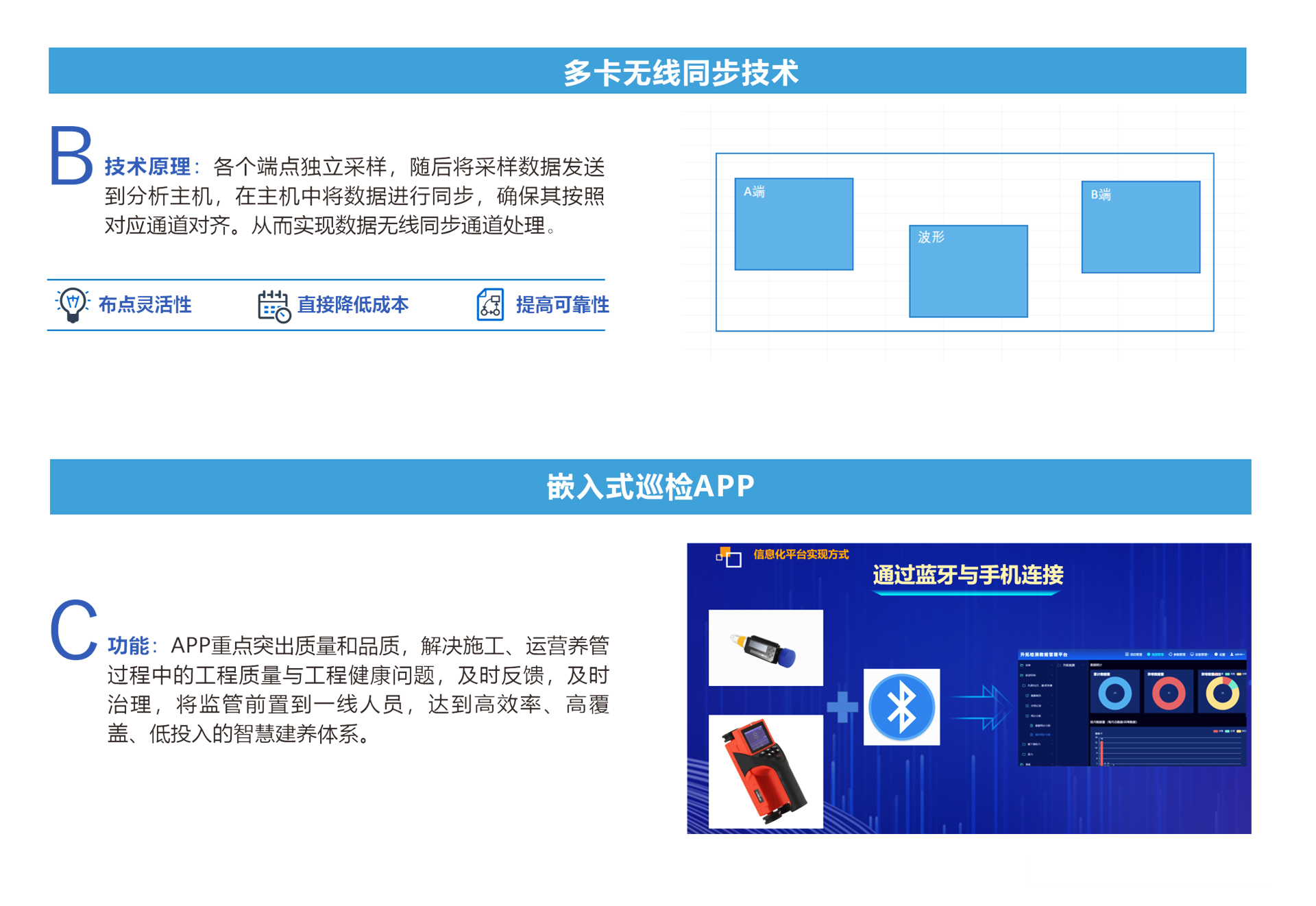 升拓检测锚定发展新质生产力为目标,以数字化、智能化、高效化、绿色化为关键提升点,持续科学技术研究,高举技术创新大旗,近期更是推出多款无线检测及数字巡检新产品,这些产品具有更高的技术水平、更广阔的应用前景和功耗更低等特点。