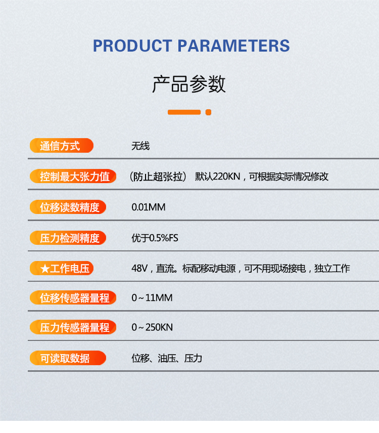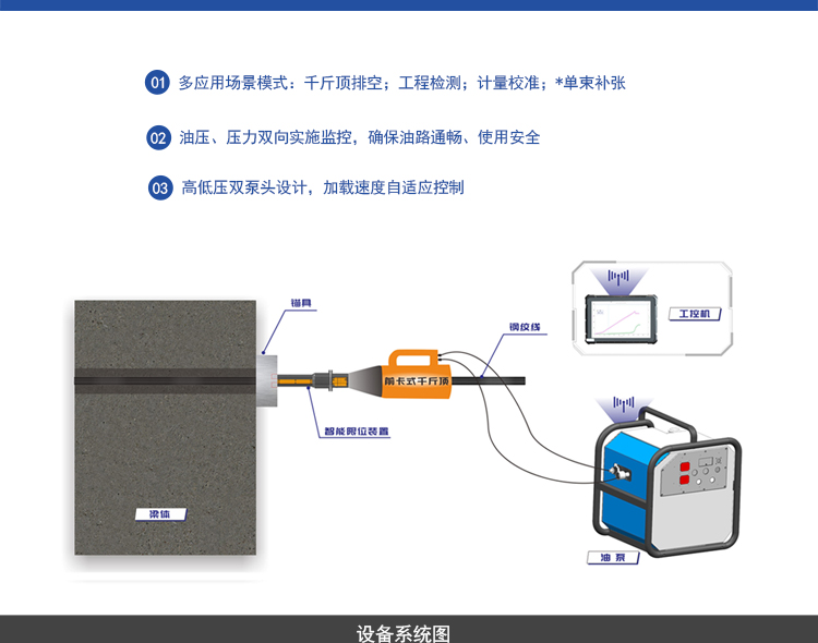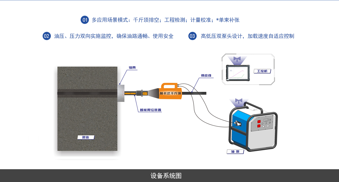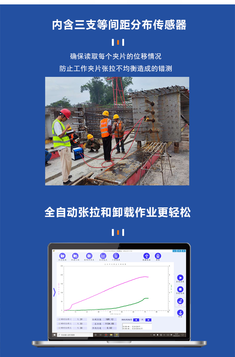 | 1 | 可控制张拉伸长量,限定夹片位移,读取独立夹片位移量,自动识别平衡点,防止超张拉 |